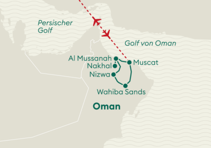 Am Nachmittag Fahrt in das idyllische Bergdorf Wakan, das auf etwa 2.000 Metern Höhe in den westlichen Hajar-Bergen liegt. Nach einer kurzen Offroad-Strecke erreichen Sie das Dorf, dessen Bewohner vom Ziegenzüchten sowie Obst- und Gemüseanbau leben. Der historische Falaj versorgt auch hier die Terrassenfelder mit Wasser. Unternehmen Sie einen Spaziergang durch die Obstgärten und geniessen Sie vom Aussichtspunkt einen herrlichen Blick über das Tal.