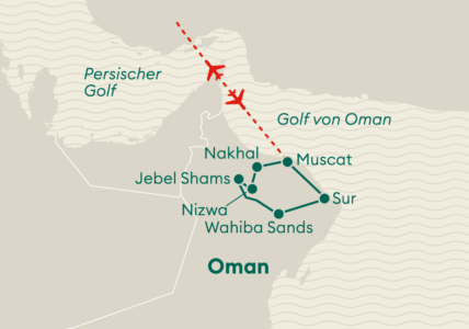 Im modernen und zugleich traditionellen Sultanat Oman spühren Sie den Orient ganz nah. Bezaubernde Wadis, mächtige Festungen, karge Landschaften und beindruckende Städte erwarten Sie. Lehnen Sie bei omanischem Kaffee und lokalen Datteln zurück und bestaunen Sie einen atemberaubenden Sonnenuntergang in den Dünen und ein Sternenhimmel wie aus 1.001 Nacht.